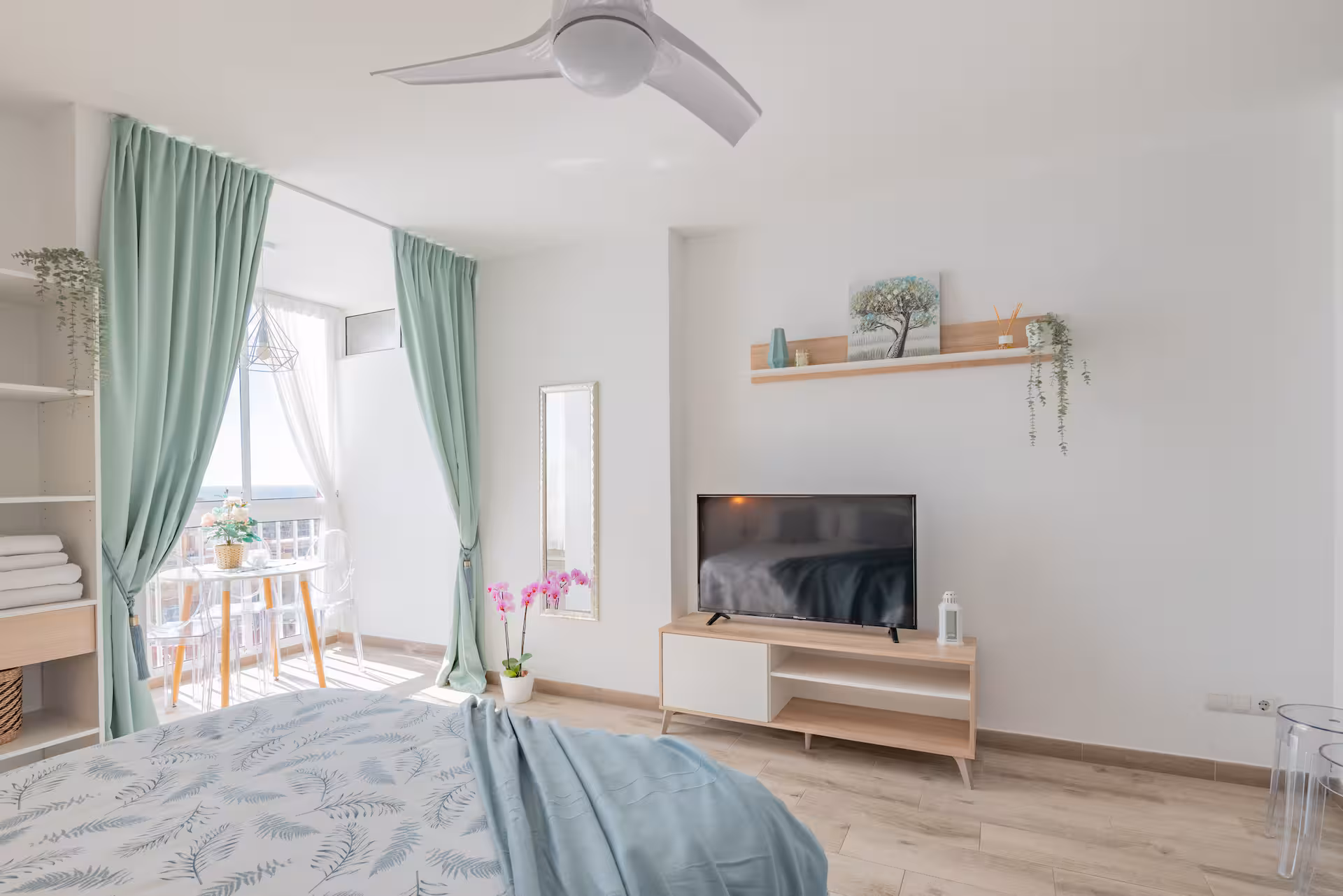 Hermoso estudio recientemente reformado, muy luminoso y cómodo, con equipamiento completo! Amplias vistas y detalles cuidados. Ubicación privilegiada, cerca de comercios y mercados, transportes, zonas de interés y playa. En una urbanización con fantásticos y amplios jardines y 2 sectores de piscinas (consultar disponibilidad – Piscina normalmente abierta durante periodo estival).