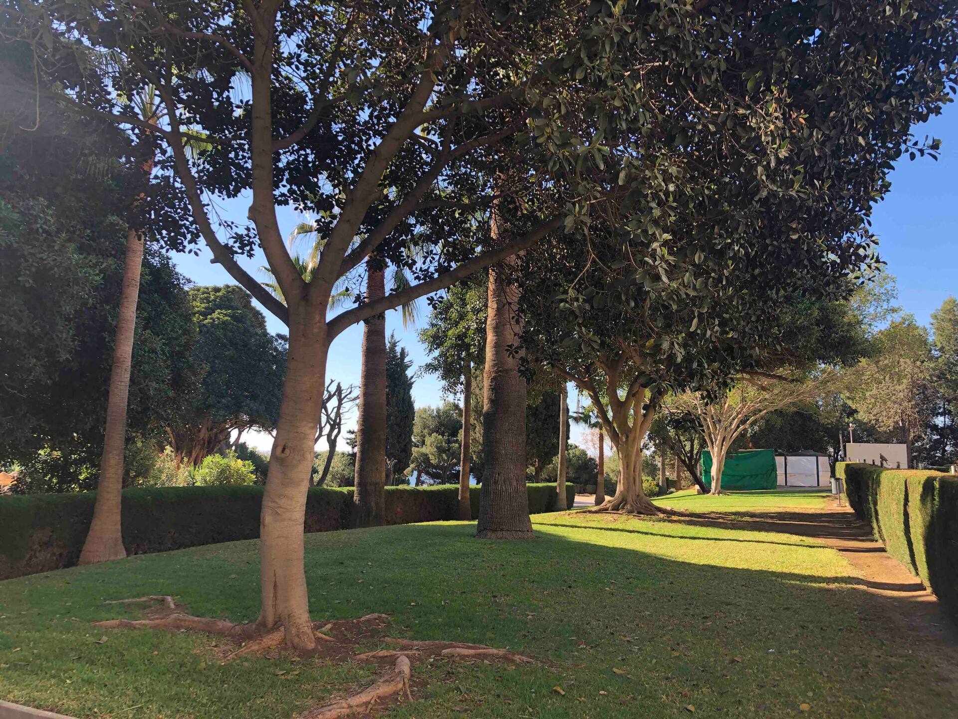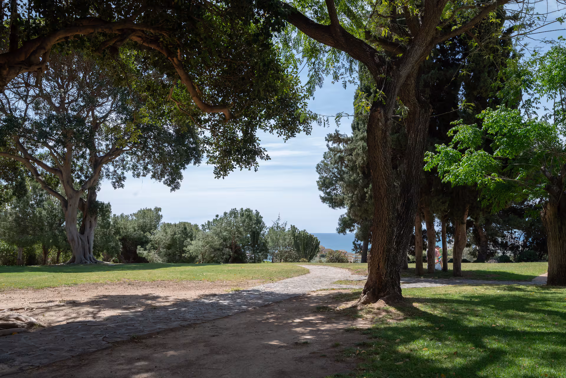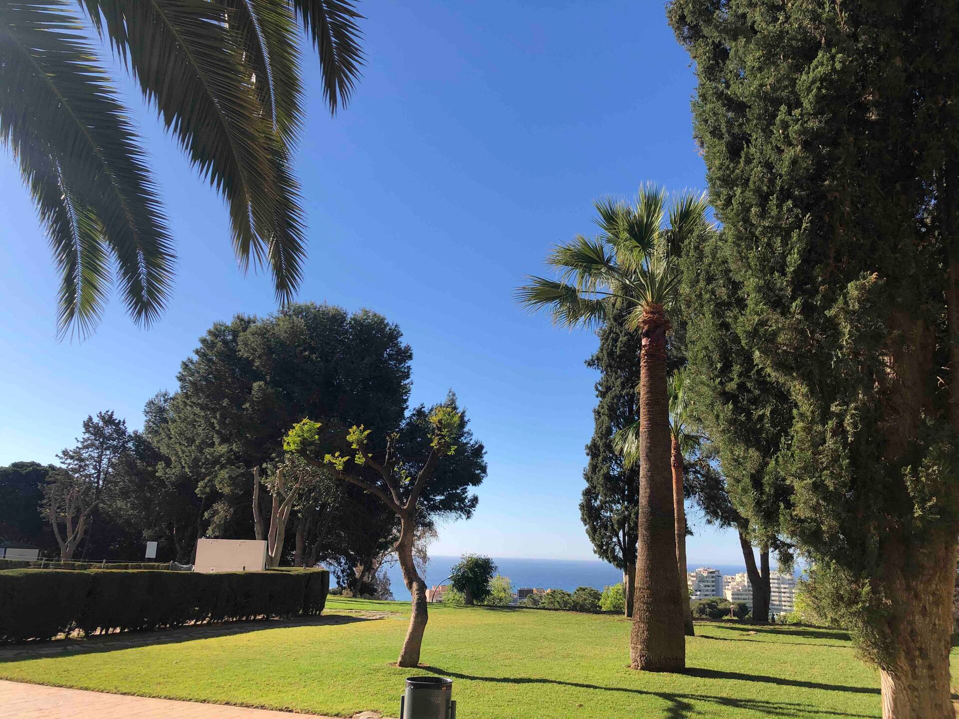 Hermosos y amplios jardines arbolados, con zonas de sol y sombras. Desde algunos puntos se puede ver el mar.