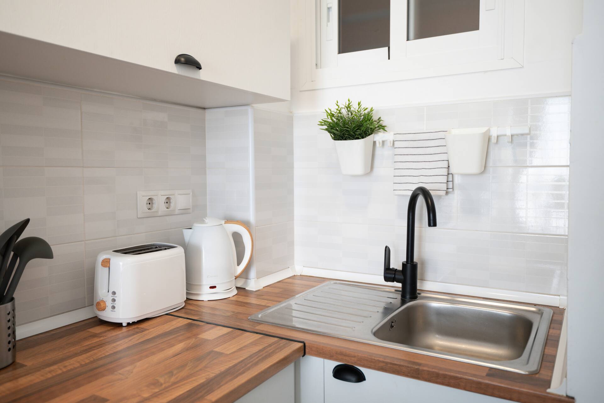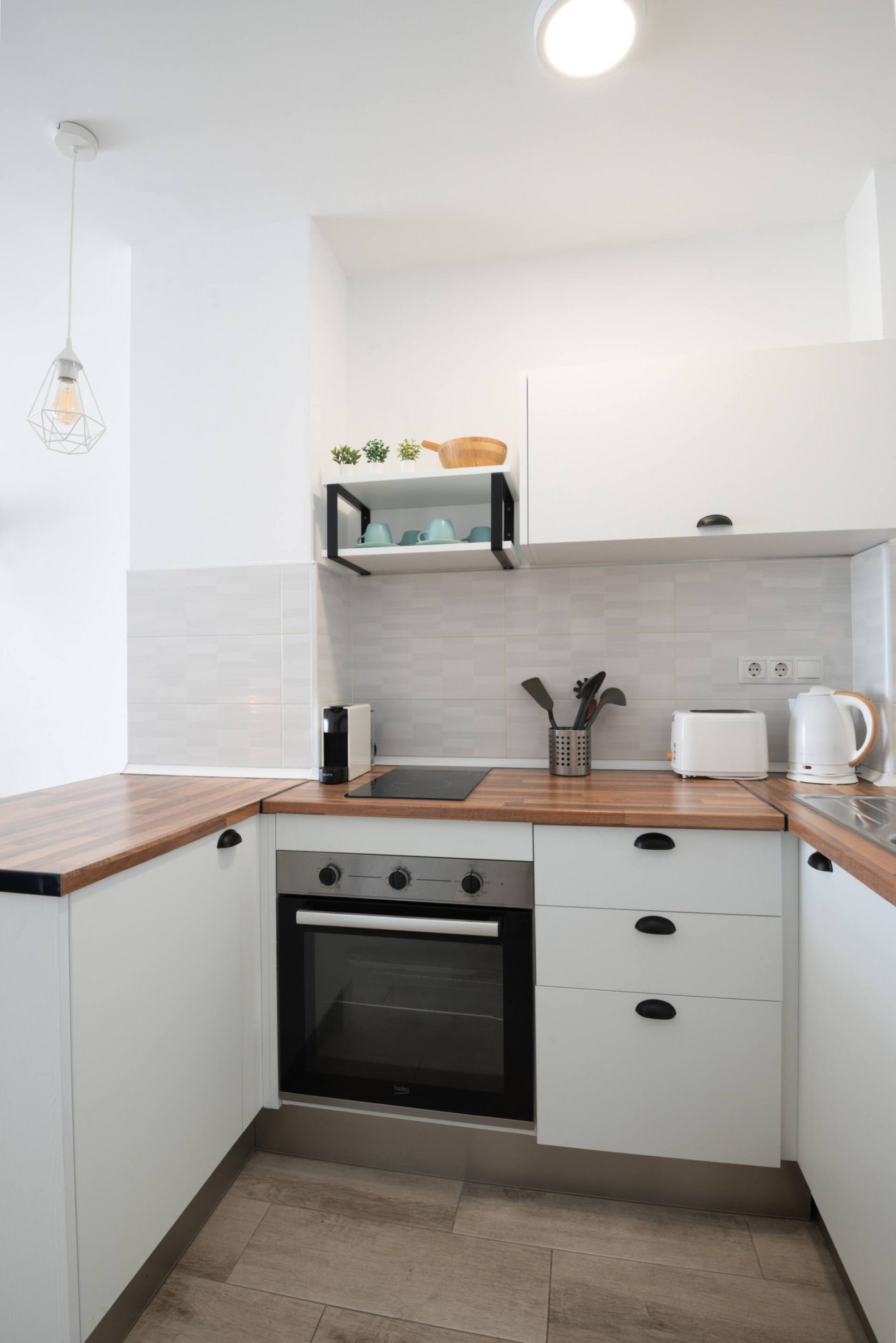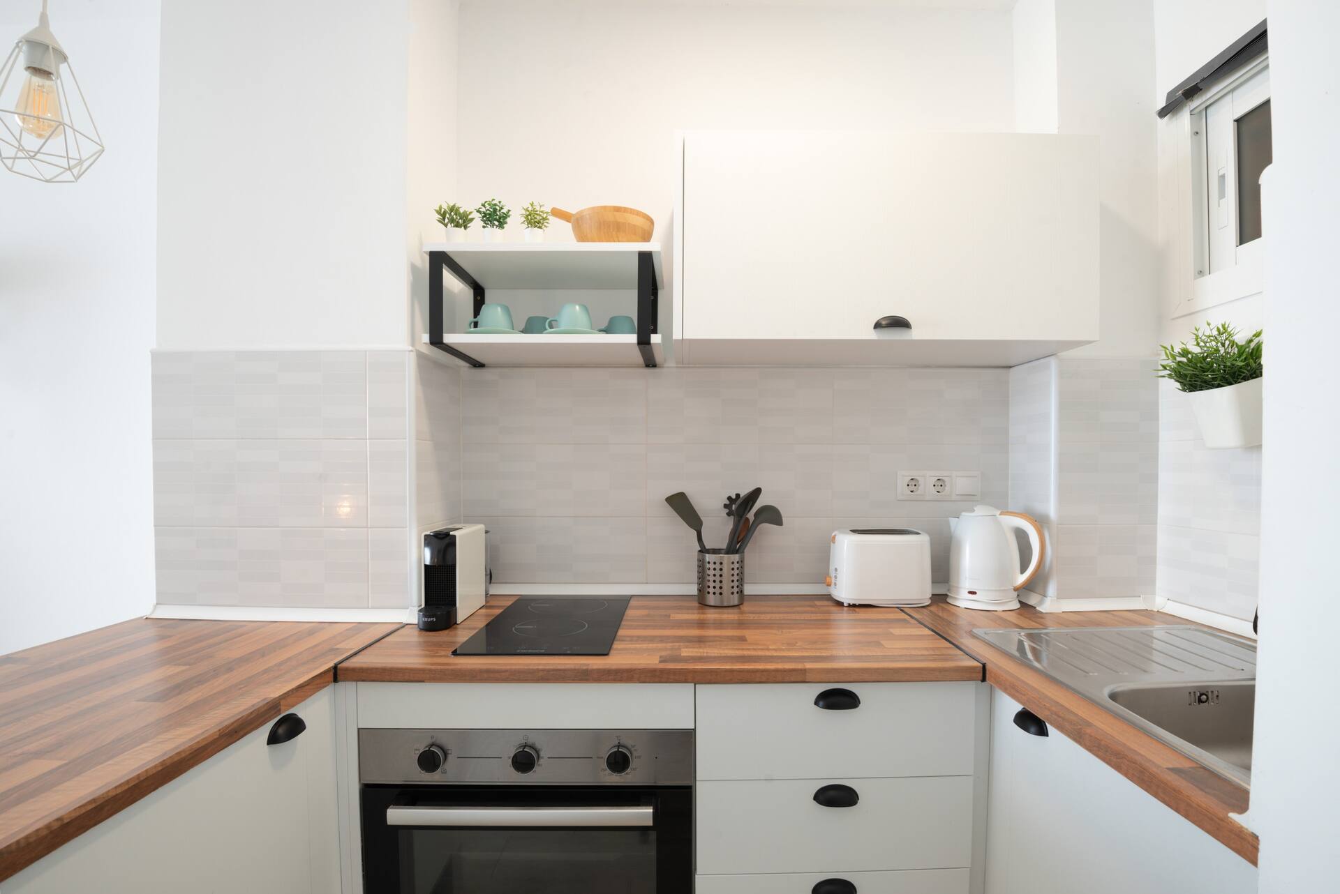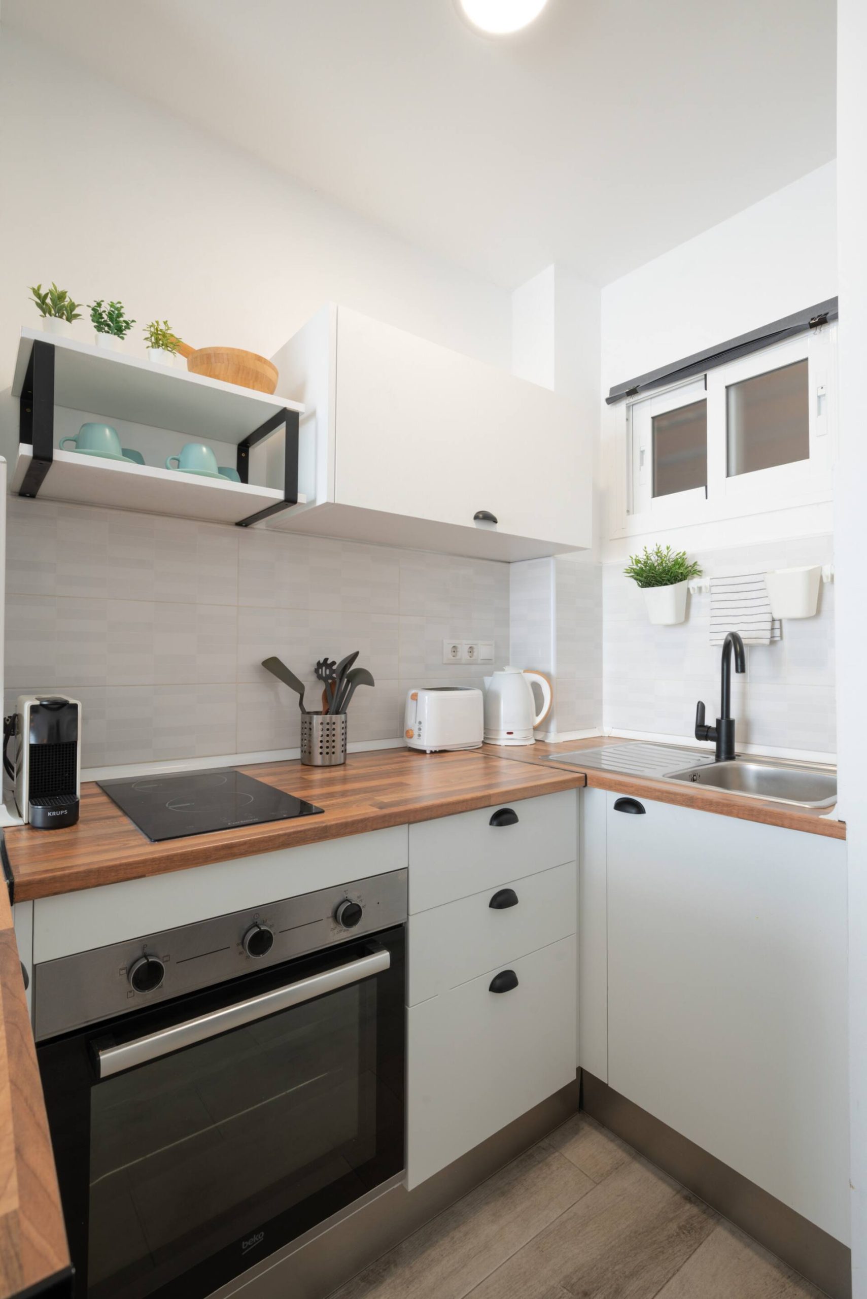 Cocina completamente equipada, con nevera/congelador, horno, fogón vitrocerámico, microondas, tostadora, cafetera Nespresso, hervidor y lavadora. Menaje de cocina completo y ropa blanca incluida (sábanas y toallas).